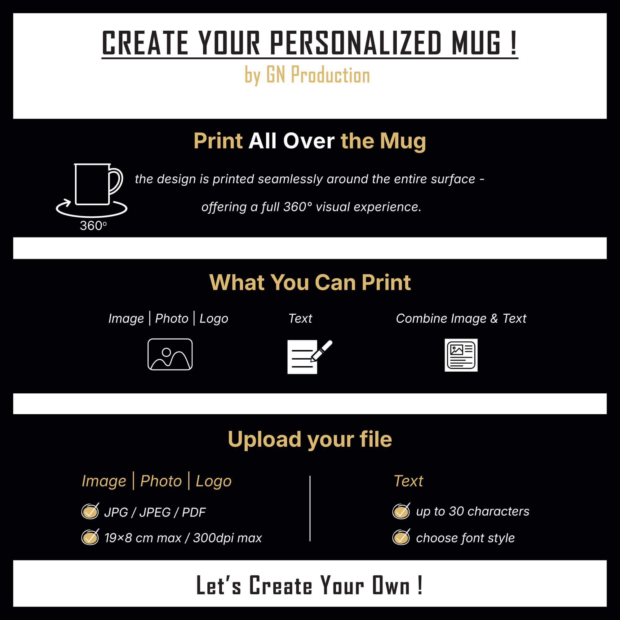 Looking for a DIY personalized gift? Create your own mug with full all-over (360°) printing. Premium ceramic, durable, stylish, and made just the way you want it.